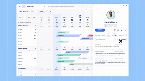 Look for guest notes, messages, and internal reminders built directly into the PMS that are visible from the dashboard or calendar. When everyone sees the same information, teams stay aligned, and nothing falls through the cracks.