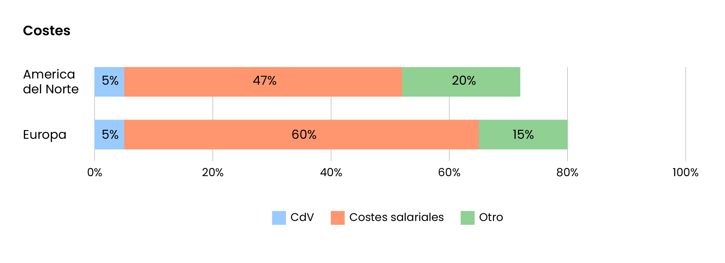 Norteamérica: aumentaron un 4,6 % y alcanzaron el 47 % de los costes operativos totales.