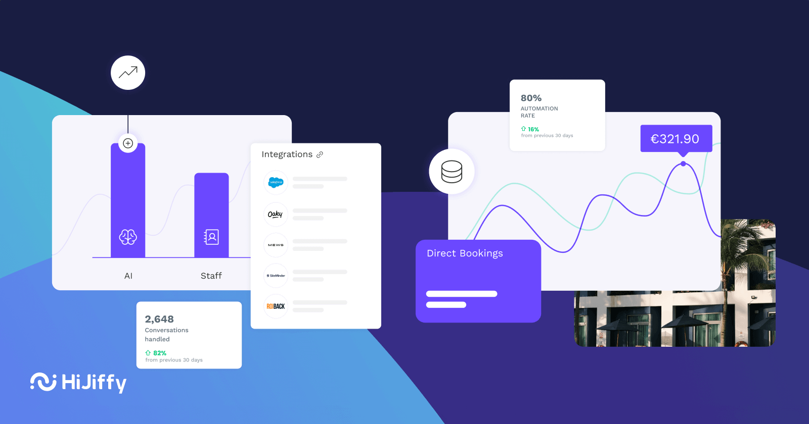 HiJiffy es una solución de comunicación todo en uno para hoteles. Aumenta tus ingresos con más reservas directas y oportunidades de upsell, y mejora la experiencia de tus huéspedes con interacciones automáticas en todos los puntos clave de su recorrido.