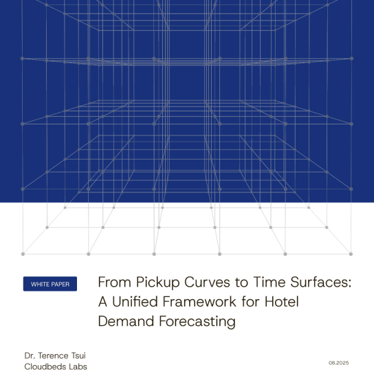 Instead of forcing hotel data into one-dimensional forecasts, Cloudbeds models demand as a two-dimensional time surface, capturing how occupancy, ADR, RevPAR, published rates, and competitor rates evolve together over time.