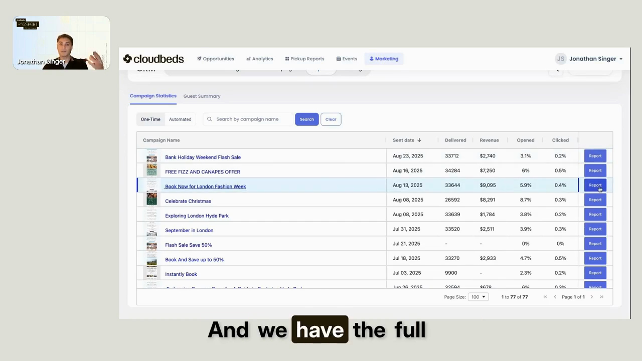 During Passport, Jonathan Singer, Customer Success Manager at Cloudbeds, showcased how Cloudbeds Revenue Intelligence aligns commercial teams.