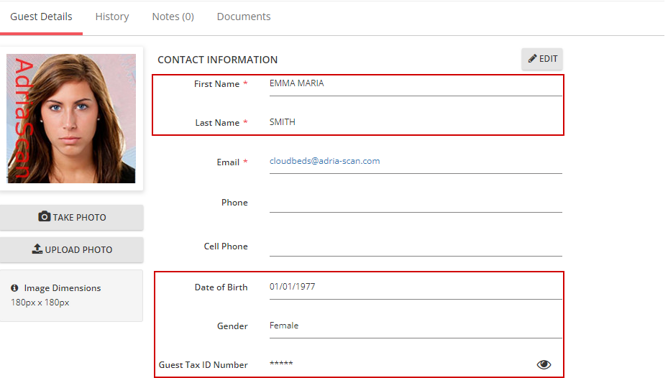 Scanning system that enables automatic transfer of textual data and document images from scanned identity documents into Cloudbeds guest profile within a few seconds.