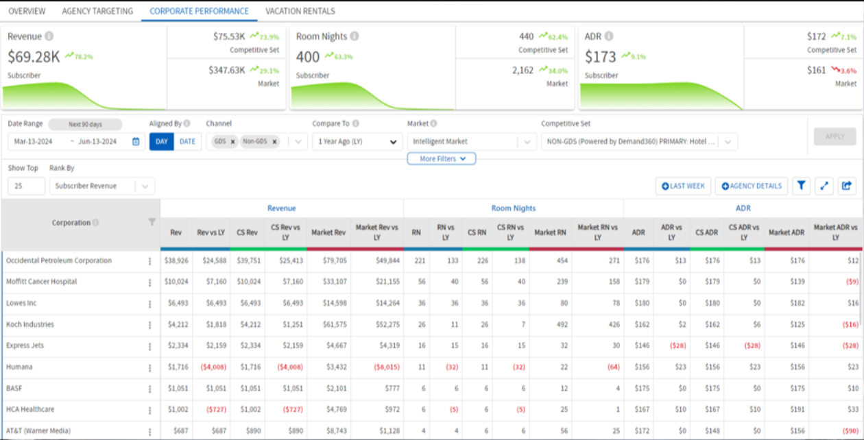 Agency360 enables confident planning of sales, prospecting, and marketing strategies to optimize agency-driven revenue. By evaluating booking data from OTAs, Brand.com, and GDSs, hoteliers can see demand and customize promotions accordingly.