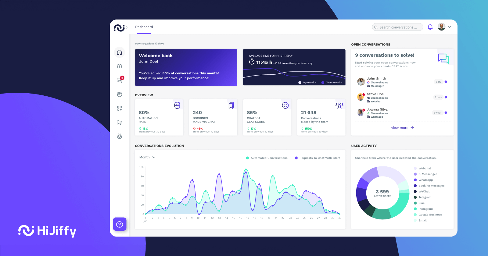 HiJiffy’s Guest Communications Hub is powered by conversational AI specialised for hospitality. Hoteliers can boost direct bookings, upsell and automated processes, answering in 130+ languages to guests on their social media, messaging apps etc