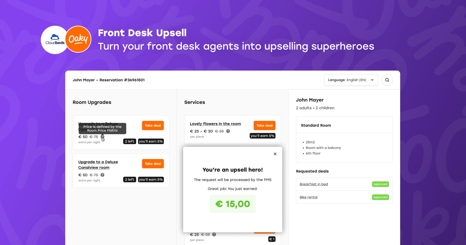 Oaky has been recognised as the Best Upselling Software by Hotel Tech Report for 7 years in a row and is trusted by hotels, groups and chains across the globe, including the ONYX Hospitality & Radisson Hotel Group.