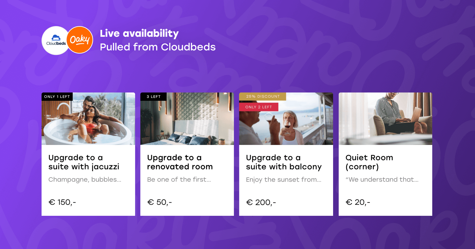 Oaky is a hyper-personalised upselling software that helps hotels boost their revenue by offering relevant upgrades & services to their guests throughout the whole guest journey.In 2025, Oaky was acquired by Plusgrade, a global leader in ancillary revenue solutions. Together, they help hotels around the world drive more revenue and deliver elevated guest experiences.