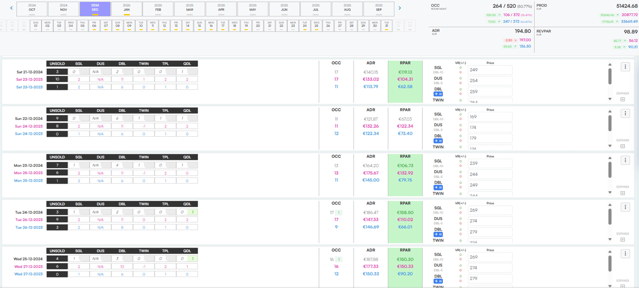 A unique AI-driven system that learnt from the human experience and application of the Revenue Management techniques of Franco Grasso Revenue Team, the European largest Revenue Management consulting, training and outsourcing company.