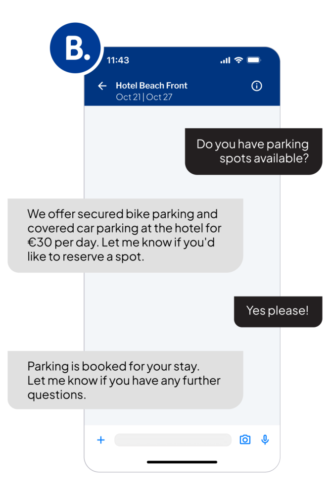 Runnr.ai drives additional revenue by upselling services like breakfast, late check-out, and parking, generating an average of €50 per room per month in extra income.