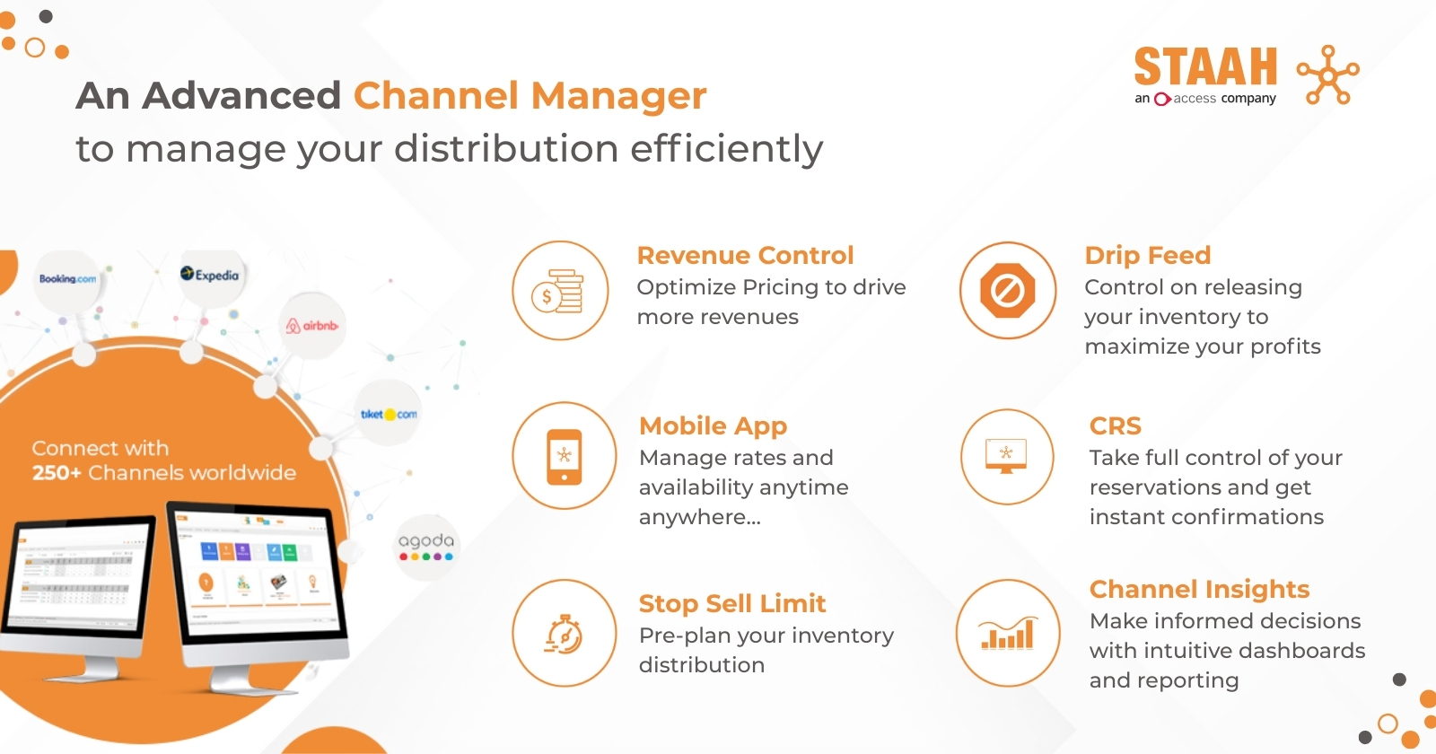 STAAH’s solutions enable properties to efficiently manage online distribution, optimize pricing strategies, and increase direct bookings. Our user-friendly platform integrates seamlessly with various property management systems, enhancing operational efficiency.