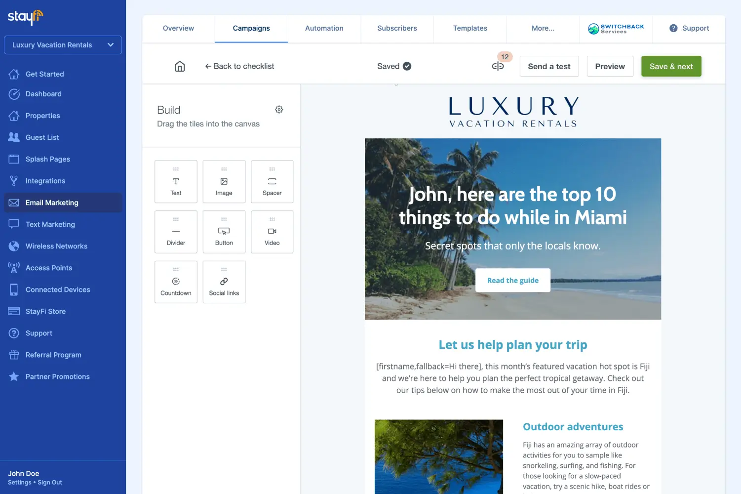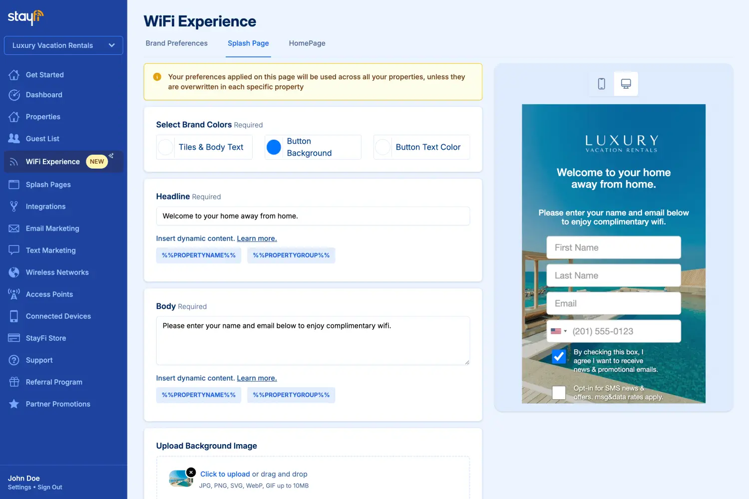 StayFi is the leading WiFi, email, and text marketing solution built specifically for short-term rentals. Our cutting-edge guest data capture technology seamlessly gathers essential guest information, such as names, emails, and phone numbers, through customized WiFi splash pages that showcase your brand.