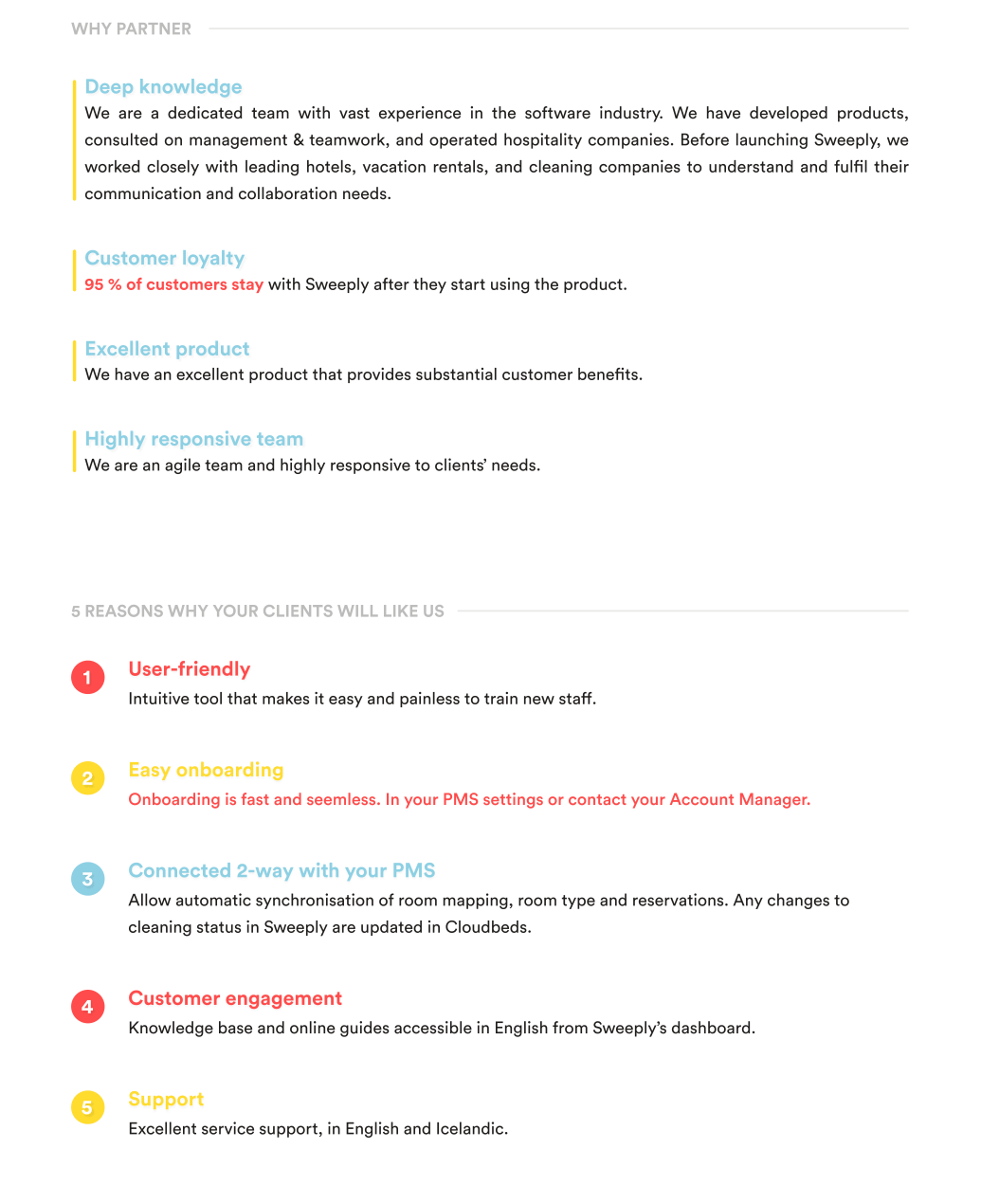 Sweeply offers a comprehensive solution for housekeeping management by centralizing all standard operating procedures in one place. This allows all housekeeping staff to collaborate within the same environment, ensuring consistency and efficiency. With Sweeply, teams are more organized and communicate better, leading to significant improvements in operational efficiency. Additionally, Sweeply enhances your property’s reputation by delivering a superior guest service, ultimately resulting in a better guest experience and higher satisfaction.