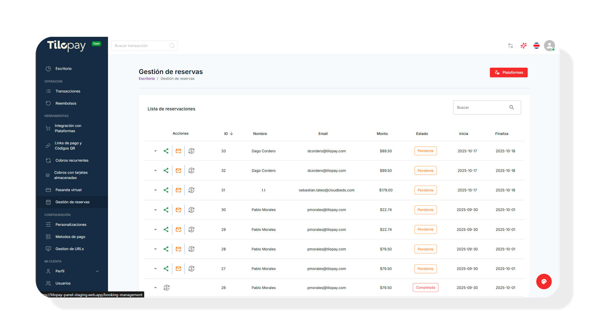 Tilopay allows you to process payments for your reservations, depositing the funds into your local bank account.
