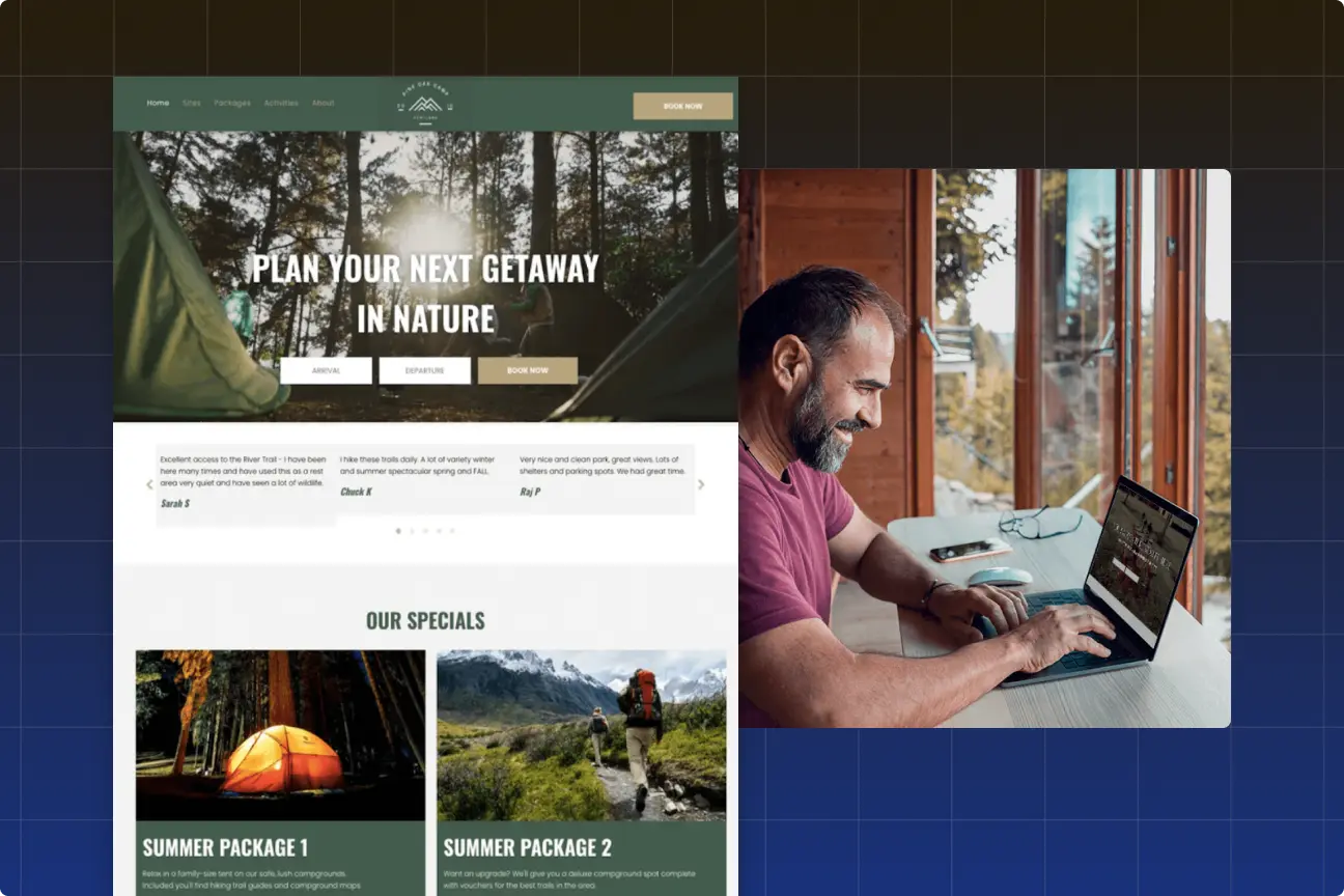 Aumente suas conversões de reserva com sites lindamente projetados e sempre atualizados, usando criação inteligente de páginas e ferramentas de SEO com IA.