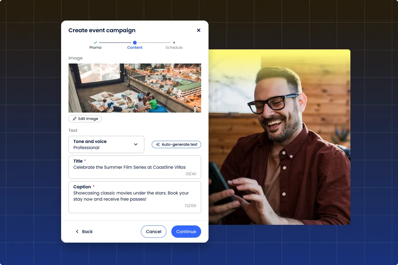 Aumente as reservas diretas em 25% com campanhas inteligentes geradas automaticamente, direcionadas aos hóspedes com maior probabilidade de reservar.
