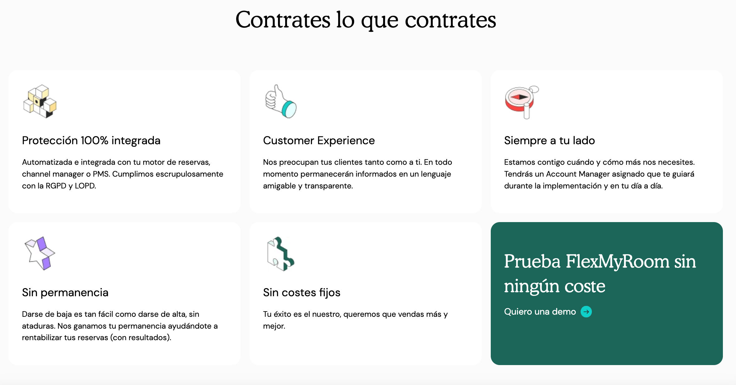 FlexMyRoom revoluciona o seguro de viagem com uma experiência totalmente integrada e automatizada para os hóspedes. Ao incorporar o seguro de viagem nas reservas diretas, melhora a atratividade, diferencia os serviços e aumenta as conversões na web. Esta integração garante uma experiência de viagem aprimorada para os hóspedes, com um mínimo de carga administrativa adicional para proprietários e gerentes. Com o FlexMyRoom, melhorar as ofertas de serviço e proporcionar tranquilidade aos viajantes se torna simples e eficaz.