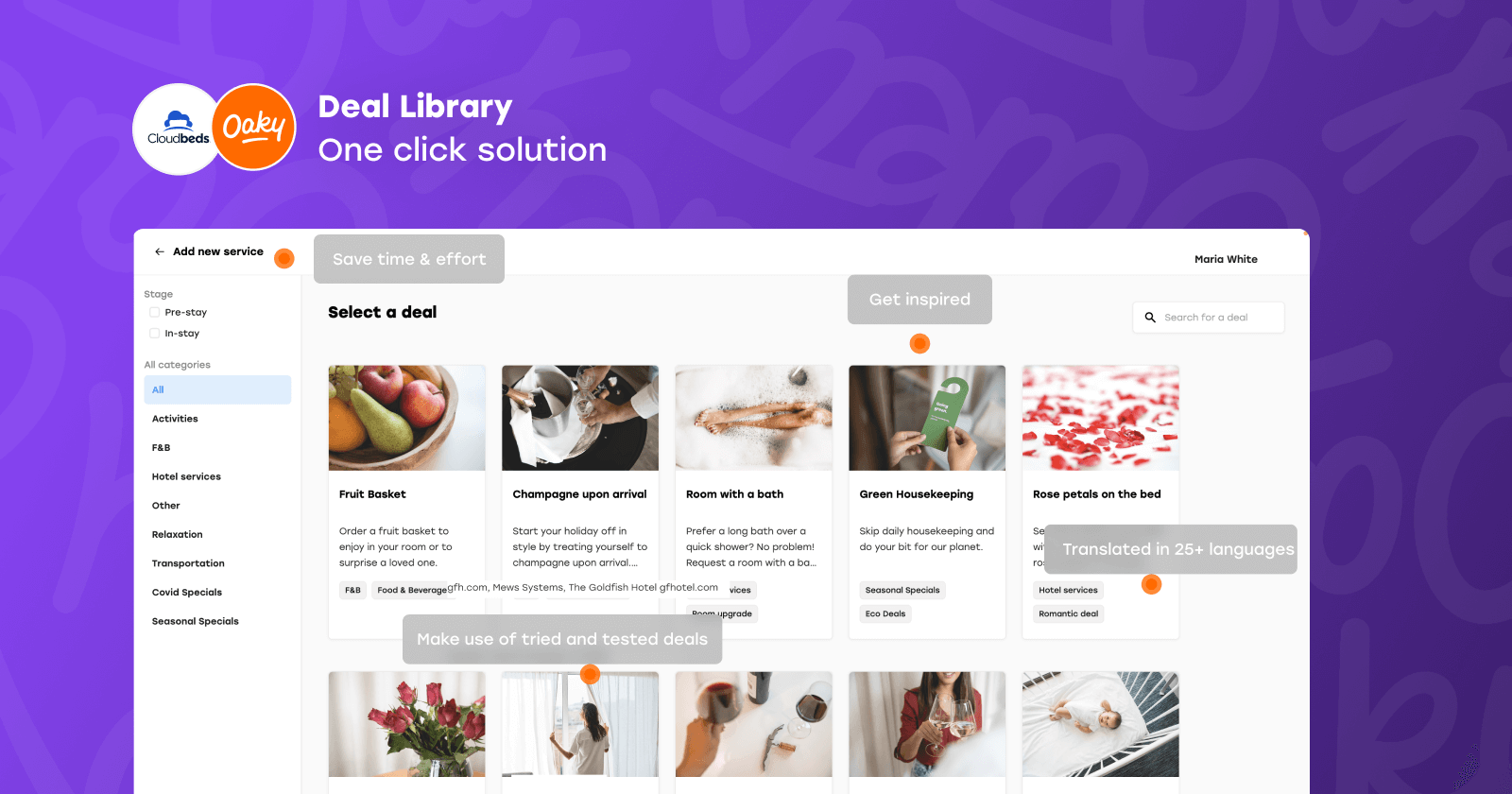 O Oaky foi reconhecido como o Melhor Software de Upselling pela Hotel Tech Report durante 7 anos consecutivos e é utilizado por hotéis, grupos e cadeias em todo o mundo, incluindo a ONYX Hospitality e o Radisson Hotel Group.