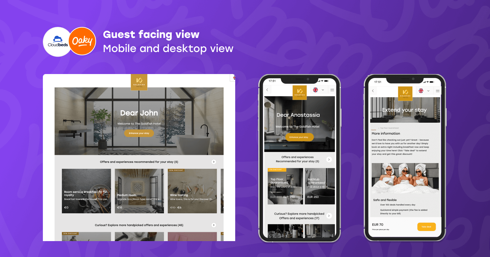 O Oaky é um software de upselling altamente personalizado que ajuda os hotéis a aumentar a sua receita, oferecendo upgrades e serviços relevantes aos seus hóspedes ao longo de toda a jornada. Em 2025, o Oaky foi adquirido pela Plusgrade, líder global em soluções de receita ancillary. Juntas, ajudam hotéis em todo o mundo a gerar mais receita e a proporcionar experiências de hóspedes superiores.