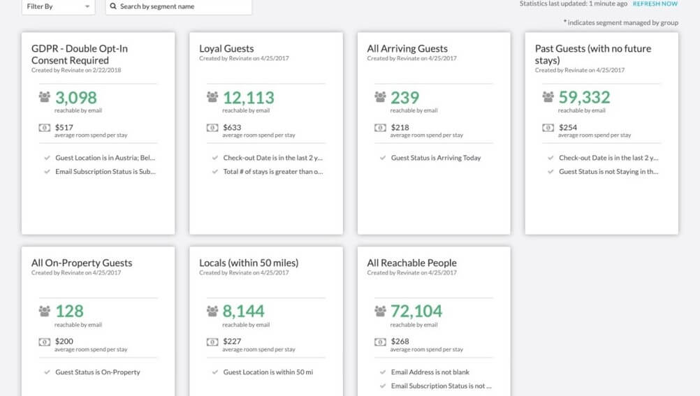 A Revinate foi criada especificamente para o setor hoteleiro. O Revinate Marketing permite que você automatize seu marketing por email em toda a jornada do hóspede e forneça campanhas personalizadas e ofertas de upsell. Os hoteleiros contam com o Reservation Sales, nossa solução de gerenciamento de leads baseada em voz, para impulsionar as reservas diretas por meio do canal de voz. E a nossa solução RezForce oferece um centro de contato sob demanda disponível 24 horas por dia.
