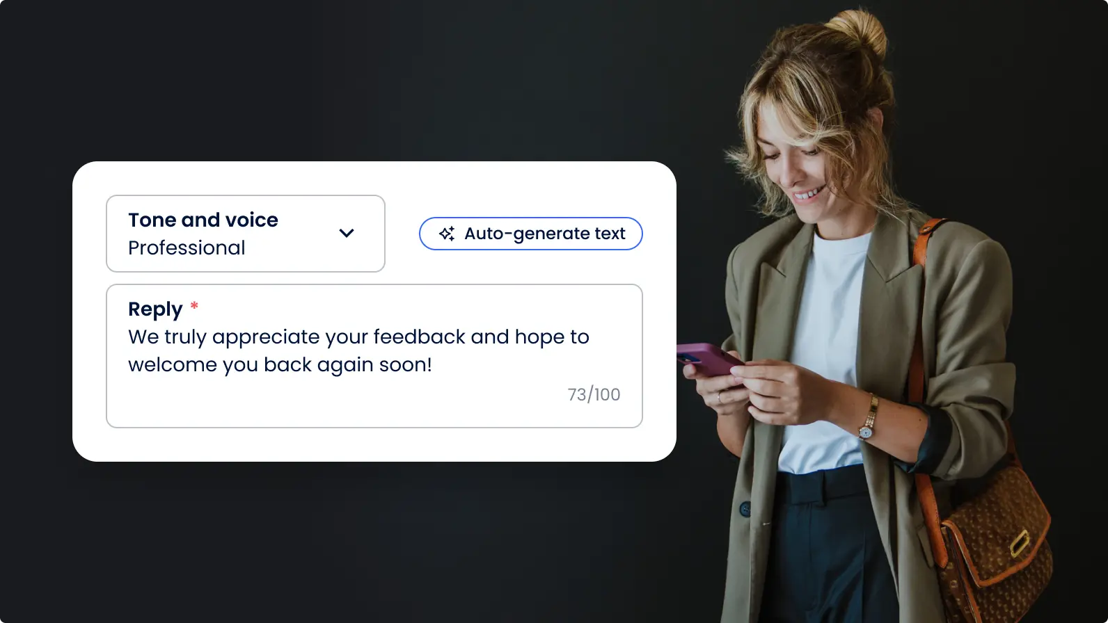 AI-generated responses ensure your brand voice and tone is consistent across all responses.