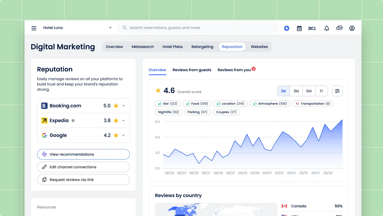 Monitor reviews by channel, understand guest sentiment, and respond quickly — all in one place.