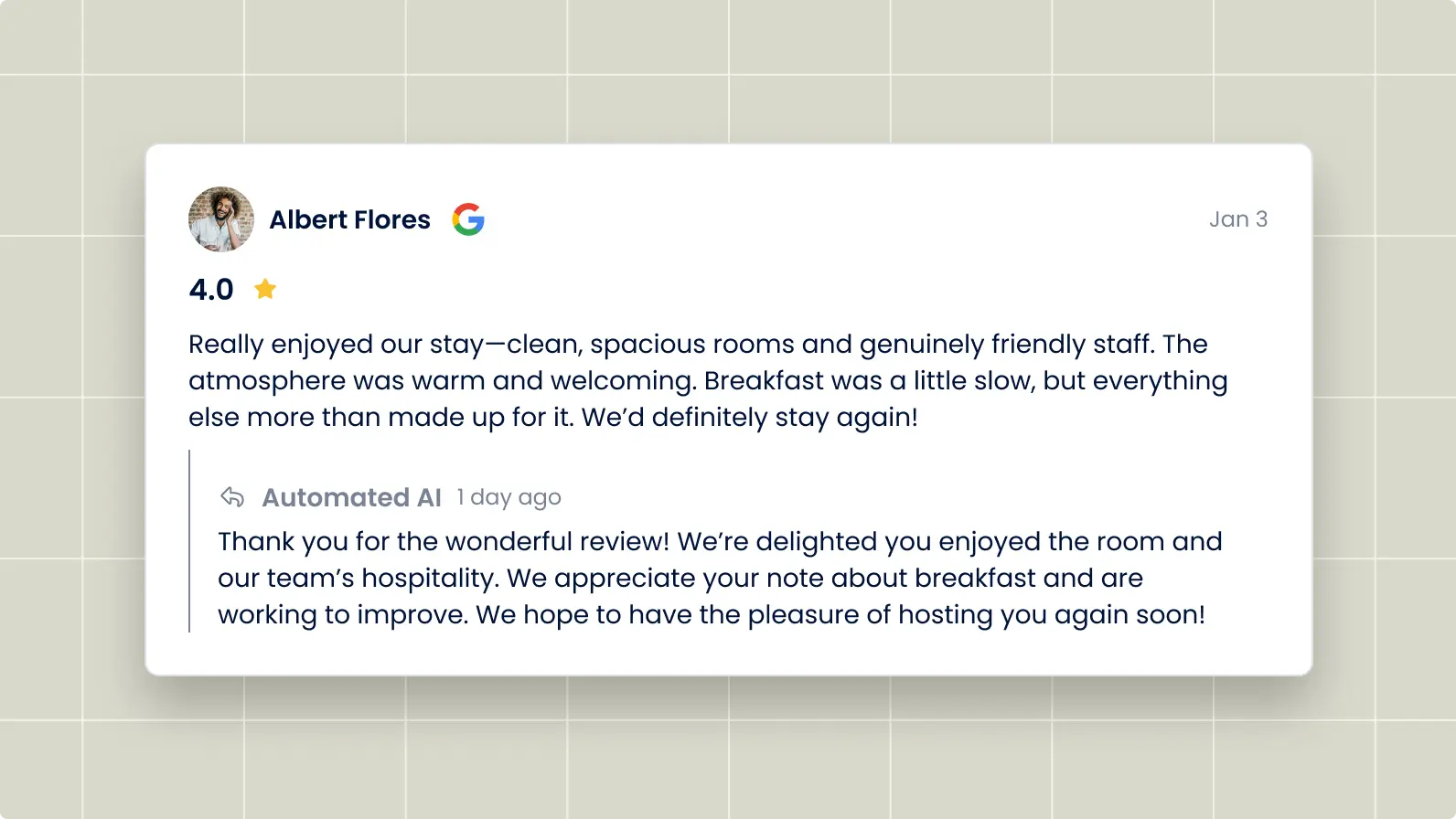 Hotels with higher review scores can charge up to 11% more per booking. By replying thoughtfully and improving faster, you boost both trust and pricing power.